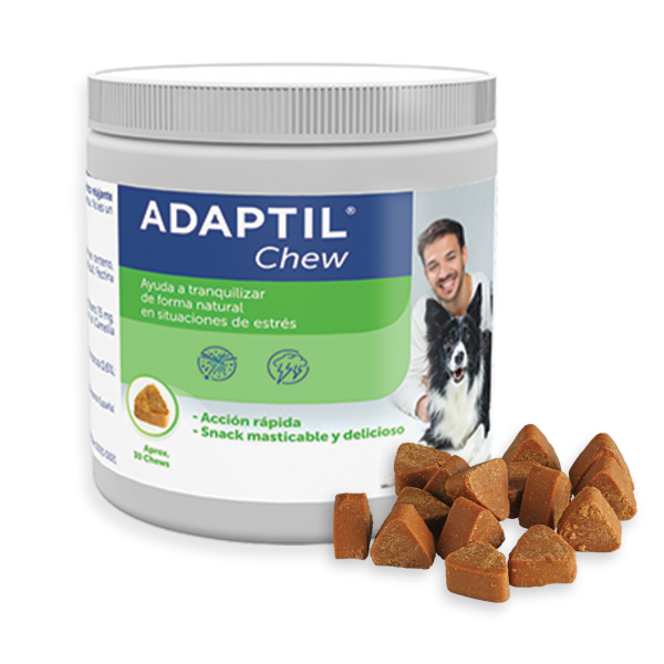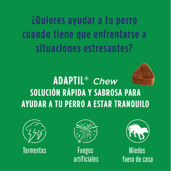 - Complemento nutricional para perros recomendado para reducir el miedo en situaciones estresantes como tormentas, petardos, fuegos artificiales y viajes en coche.