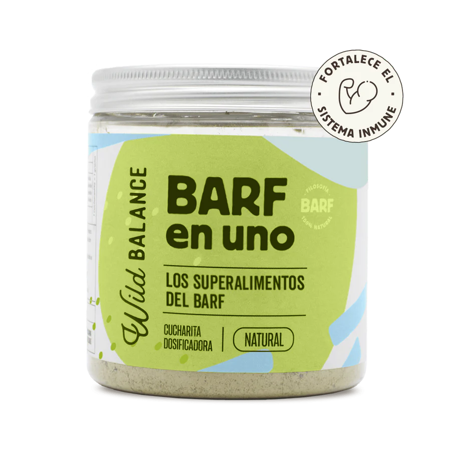 BARF EN UNO es un suplemento que fortalece el sistema inmune de perros y gatos y cuida su bienestar general. Además, es 100% natural.