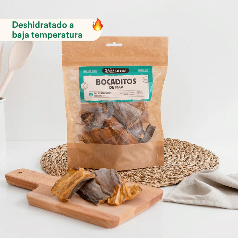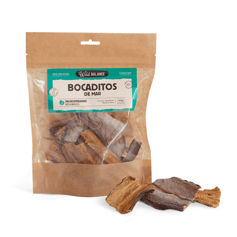 Los bocaditos de mar son trocitos de anguila deshidratada, ricos en Omega 3 y 6 que mejoran la piel y el pelaje. Sin aditivos ni conservantes y que, además, les encantan a perros y gatos. Hipoalergénicos.