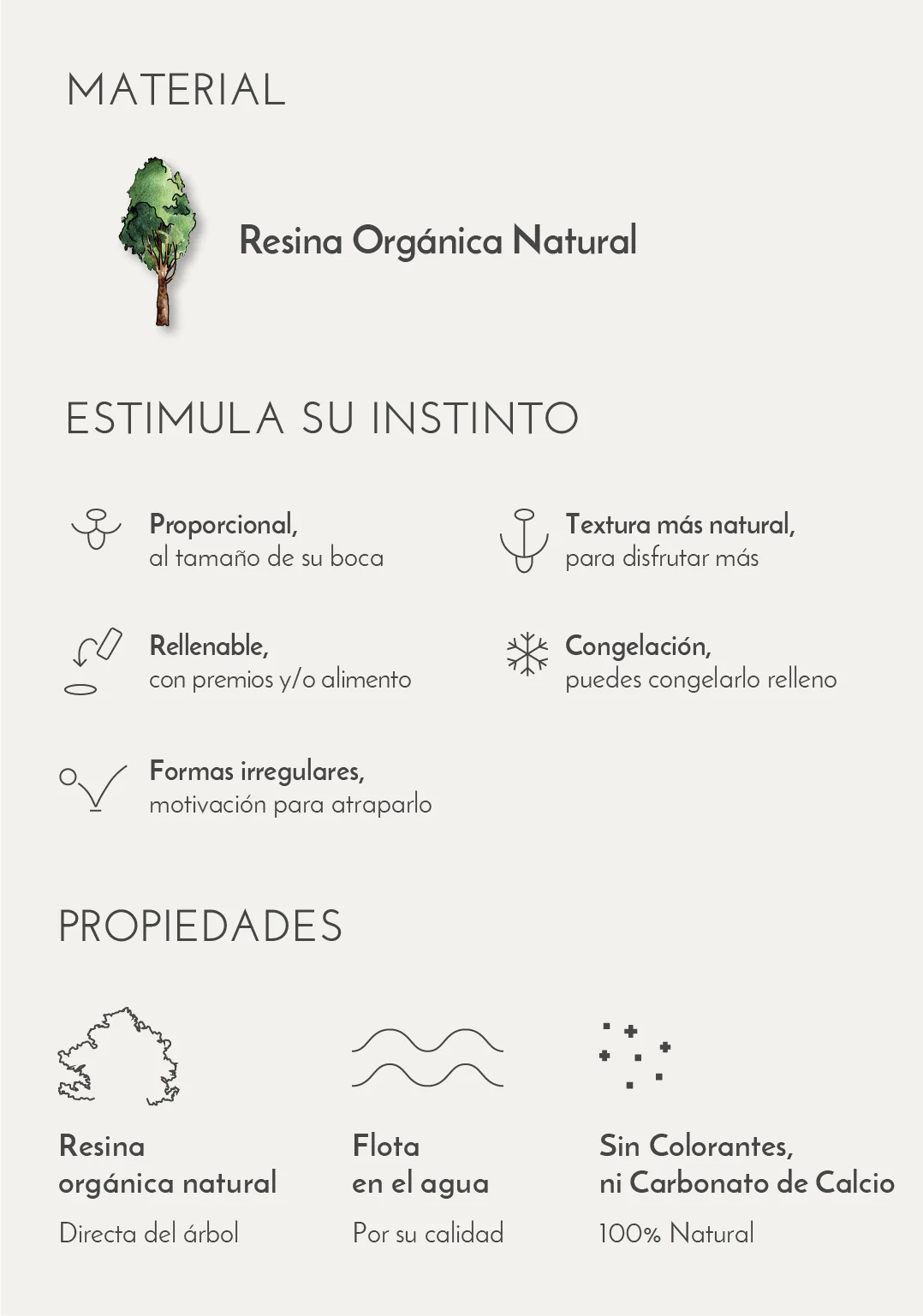 Fabricado con resina orgánica natural, procedente directamente del árbol, con un color natural, sin ningún tipo de colorante y sin riesgo de intoxicación por desgaste.