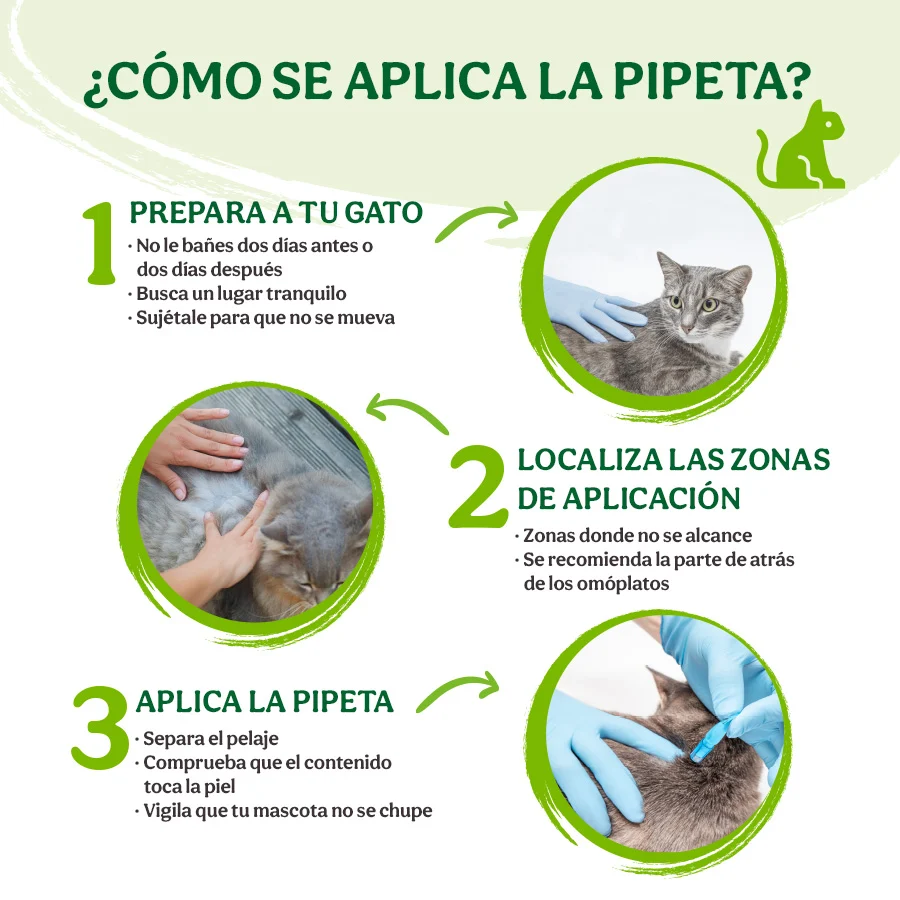 Está recomendado para gatos de más de 2 kg de peso, se aplica fácilmente en la base de la cabeza para evitar que el animal pueda lamer el producto asegurándose así su bienestar y otorga una permanente protección durante varias semanas después de su aplicación. Sigue siendo eficaz tras baños y champús, lo que garantiza la máxima durabilidad.